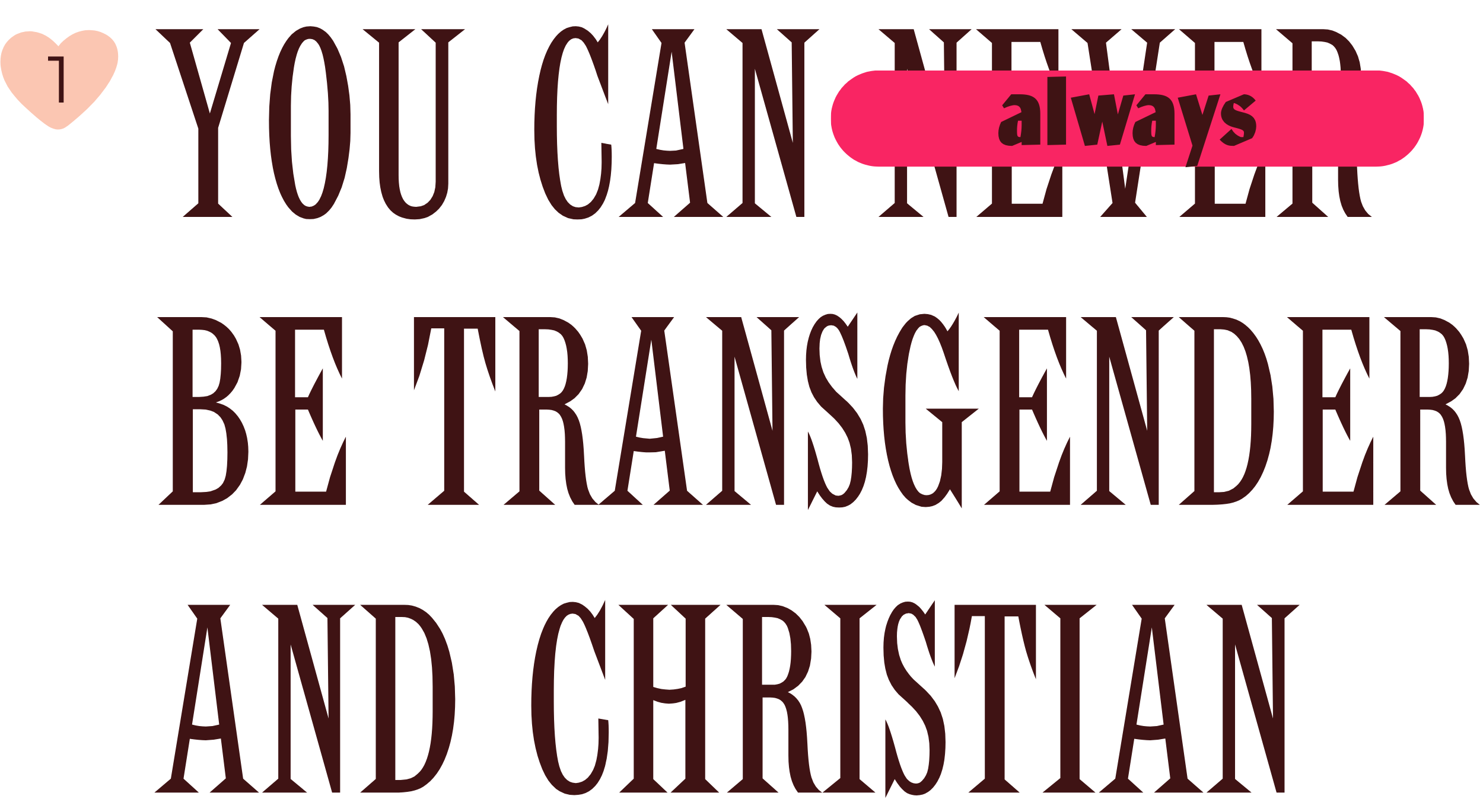 Wonky theology has led many folks around the world to believe that gender diversity is incompatible with Christianity. My life and work is dedicated to showing how the opposite is true; God celebrates and 100% affirms us, as we are.